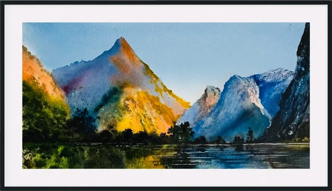 Fiordland’s dawn & dusk light is elusive. I’ve been running controlled experiments with granulating pigments, layering transparent washes and dropping wet colors into wet to recreate that mineral yet hazy glow. Some of these tests succeed; others fail but every failure is a clue that illuminates the next step.